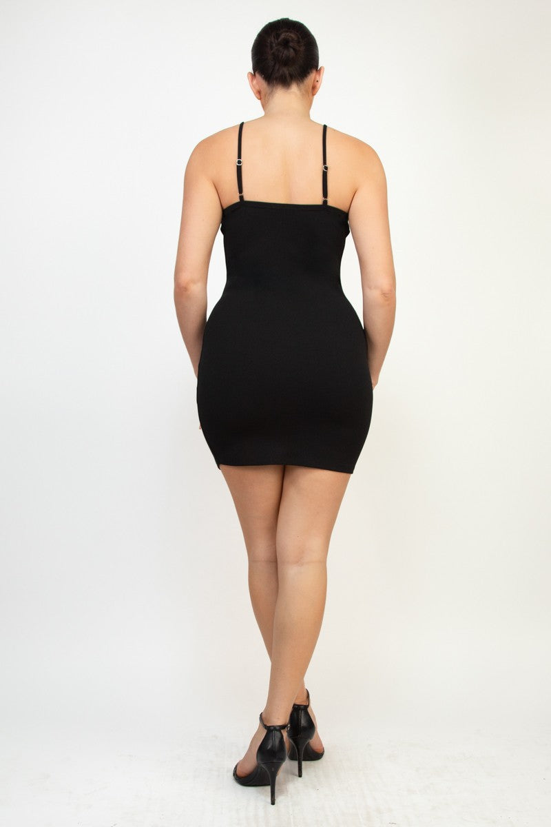 adjustable cami straps with rhinestones, smooth and soft fabric, bodycon