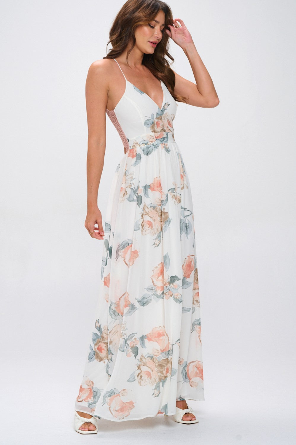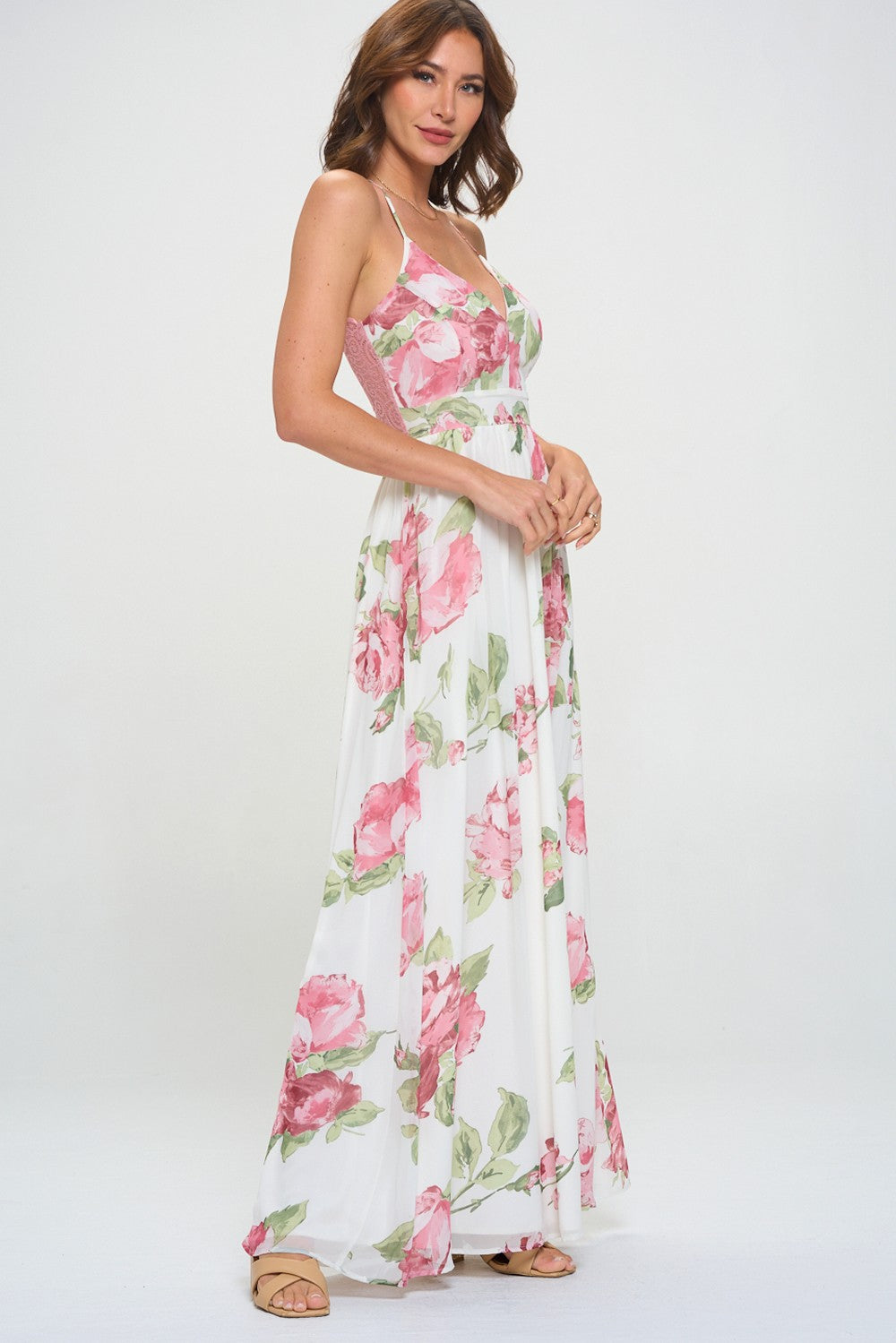 Floral Lace Trim Maxi Dress