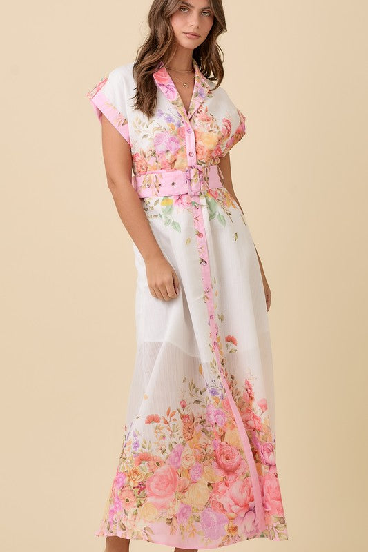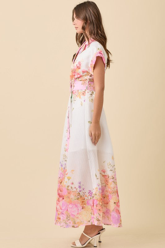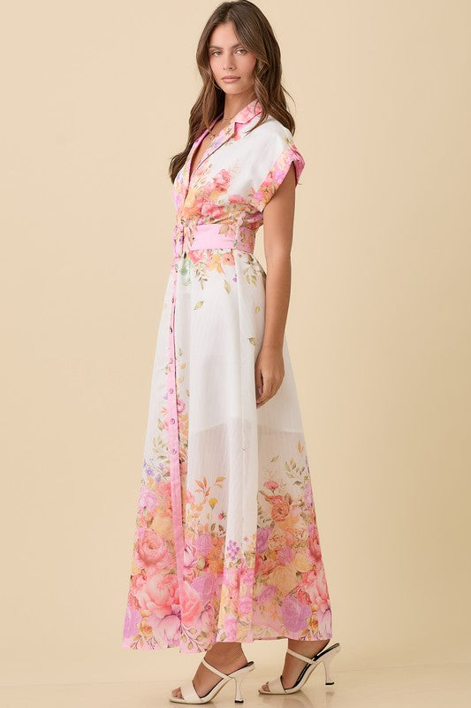 FLORAL LAPEL COLLAR BUTTON DOWN SUMMER MAXI DRESS