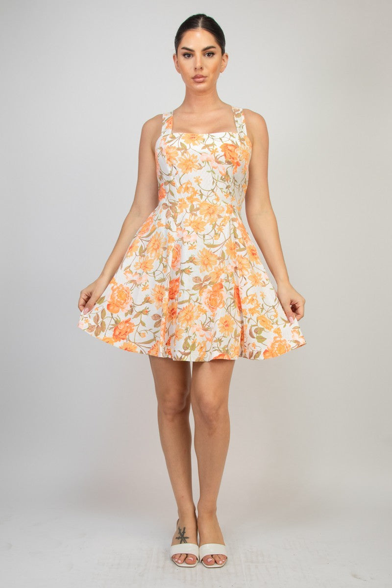 Floral Print Square Neck Mini Dress