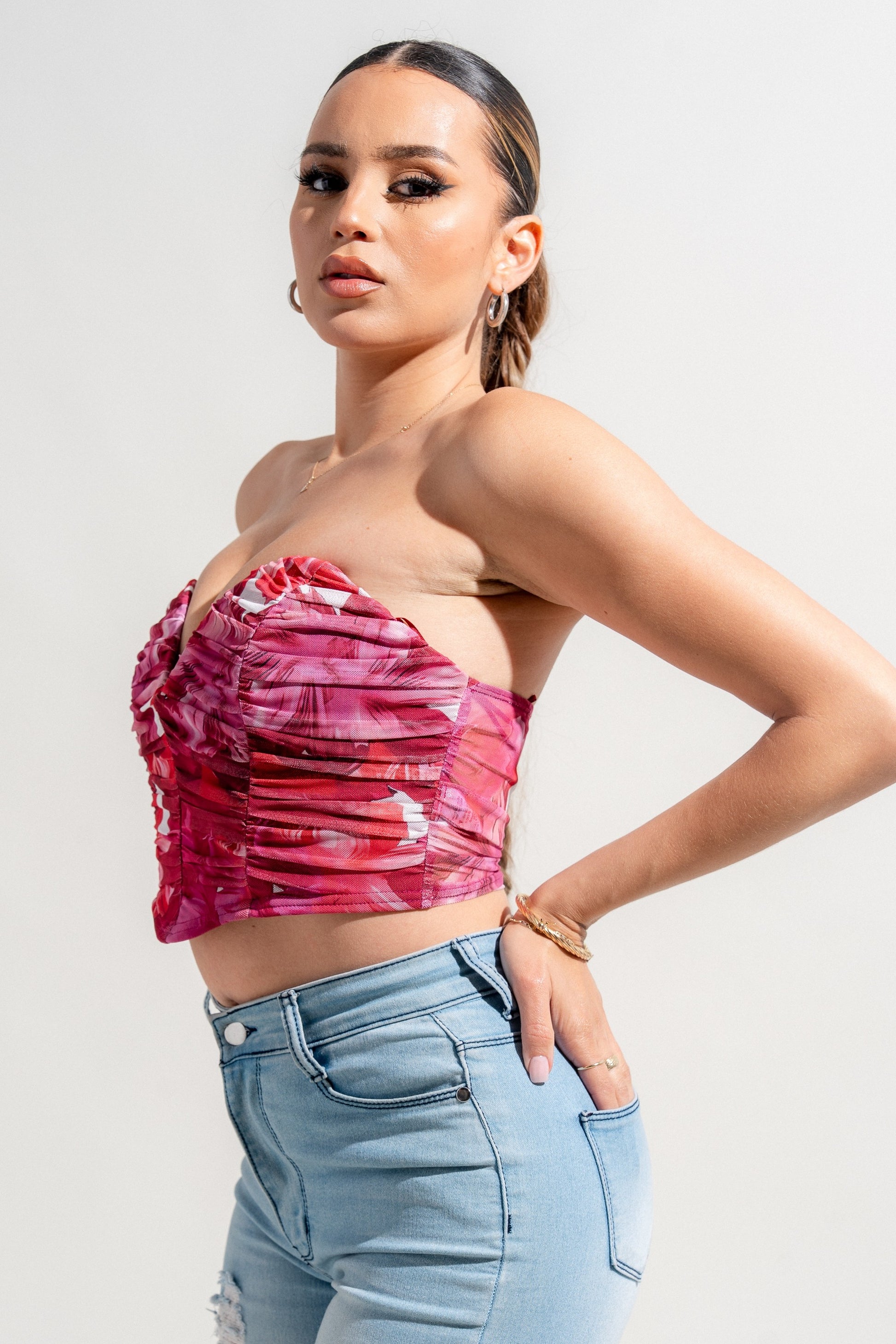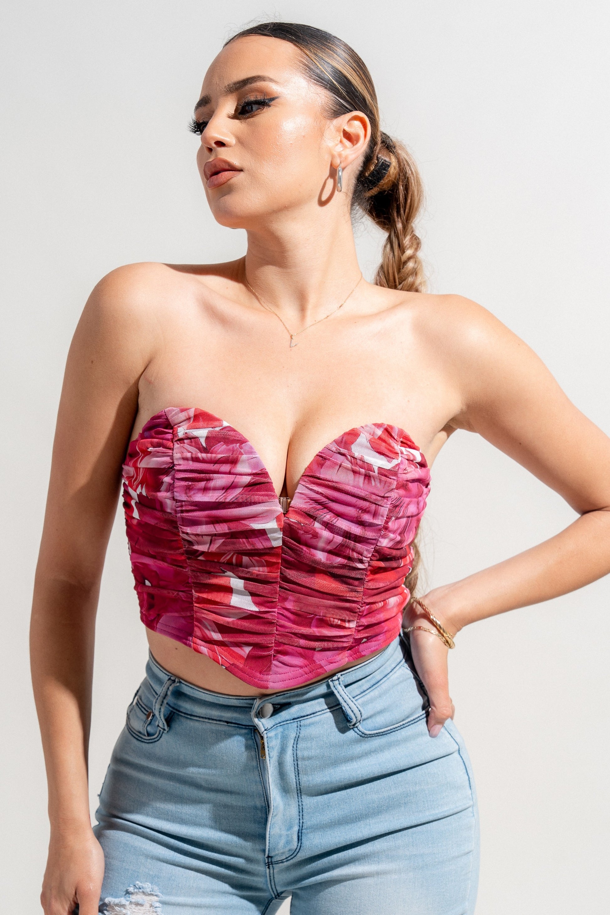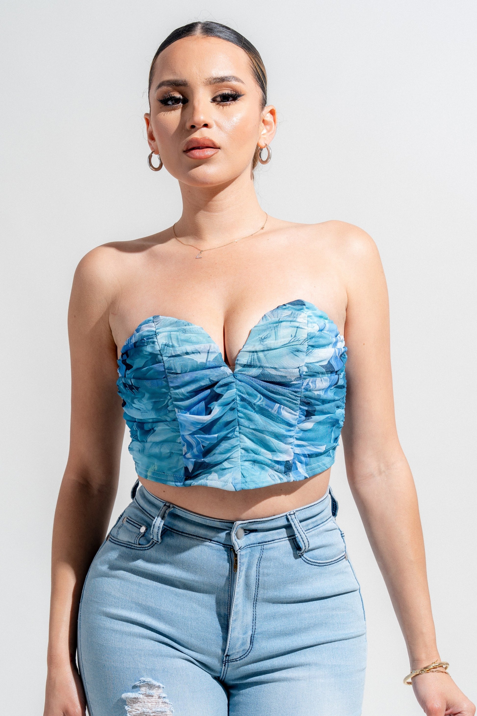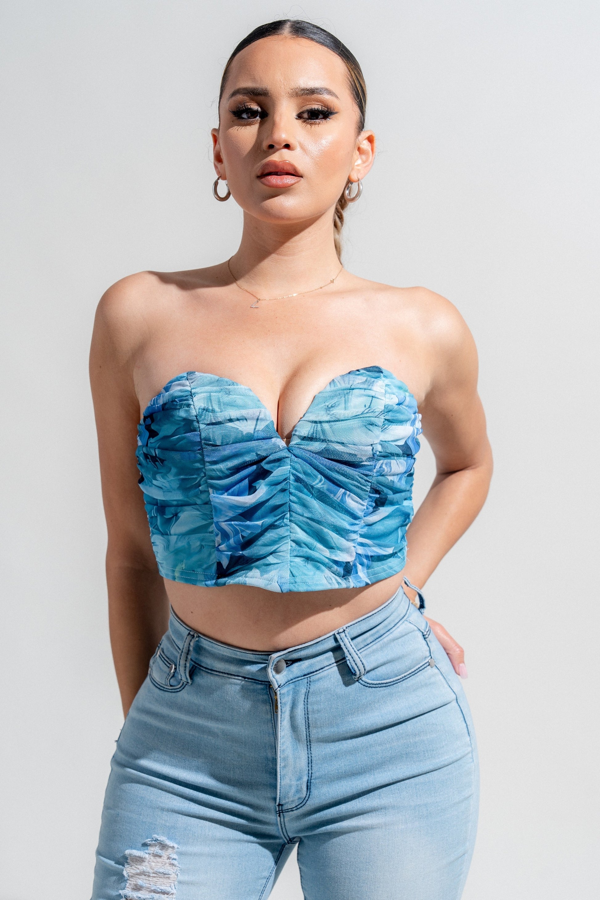 Mesh Print Deep Plunge Corset Printed Mesh Tube
