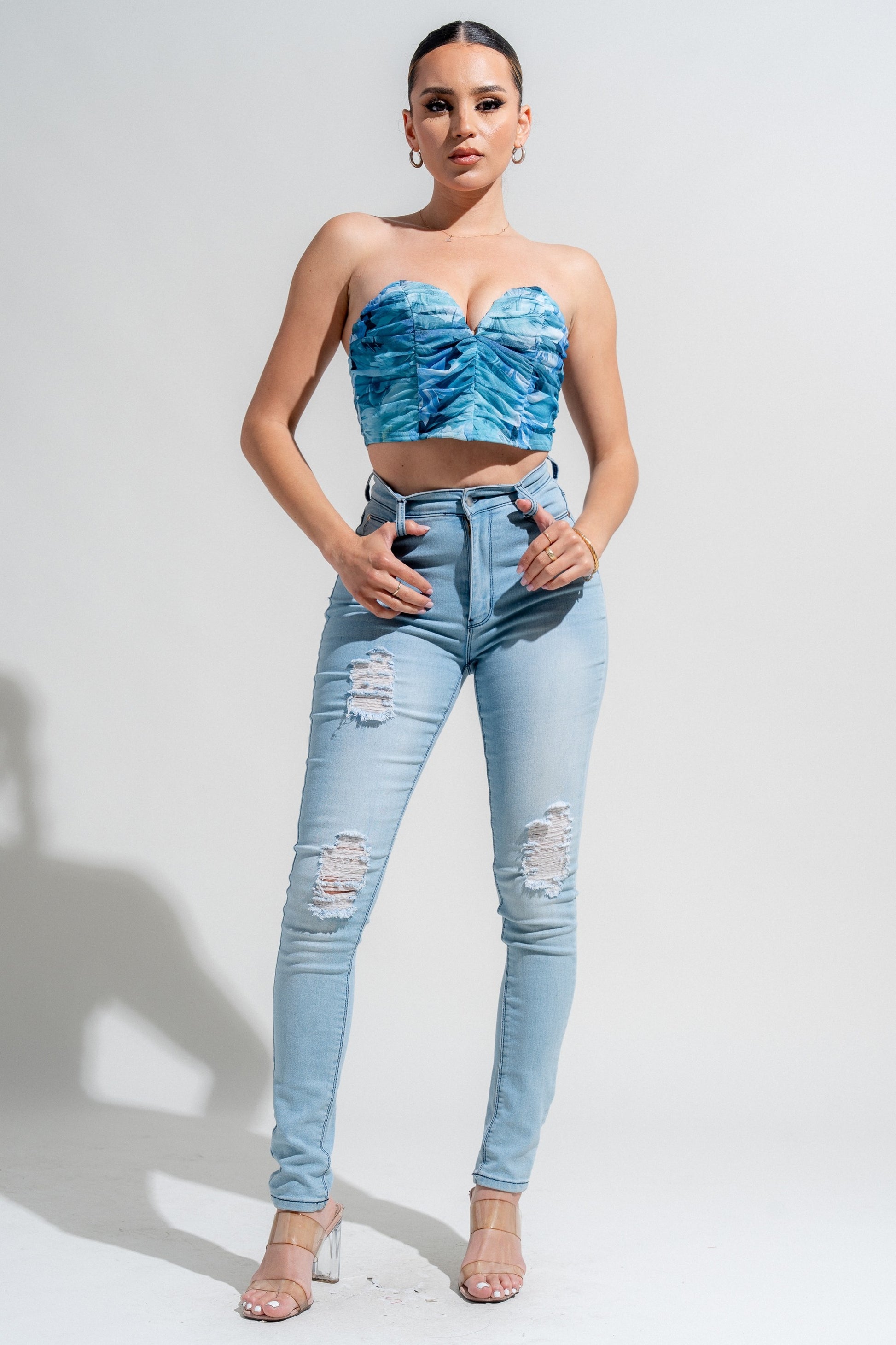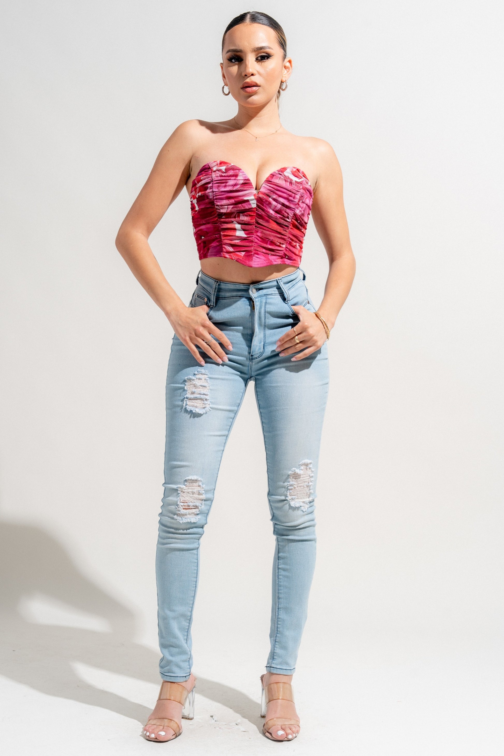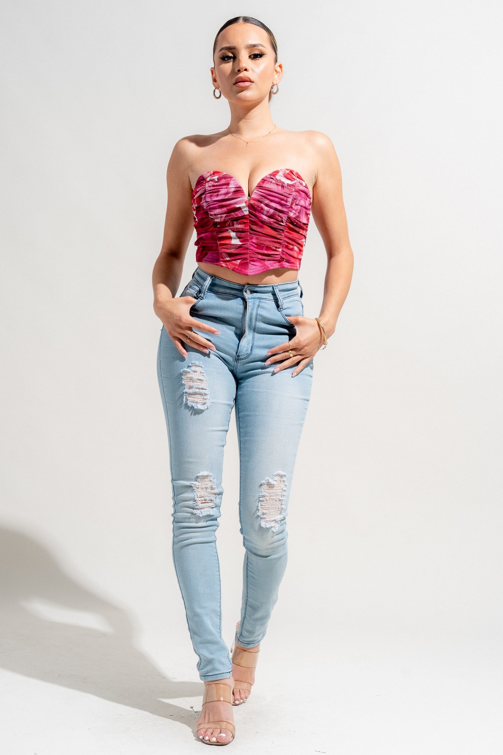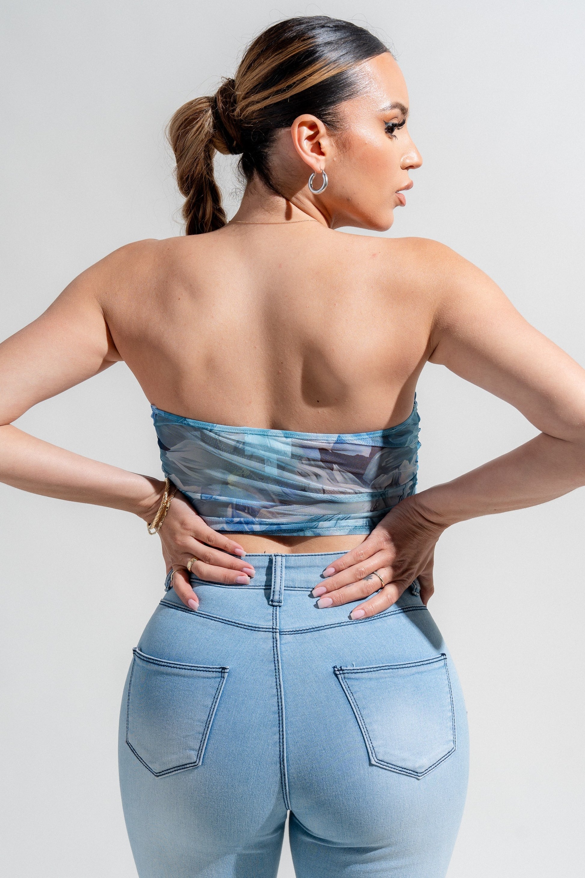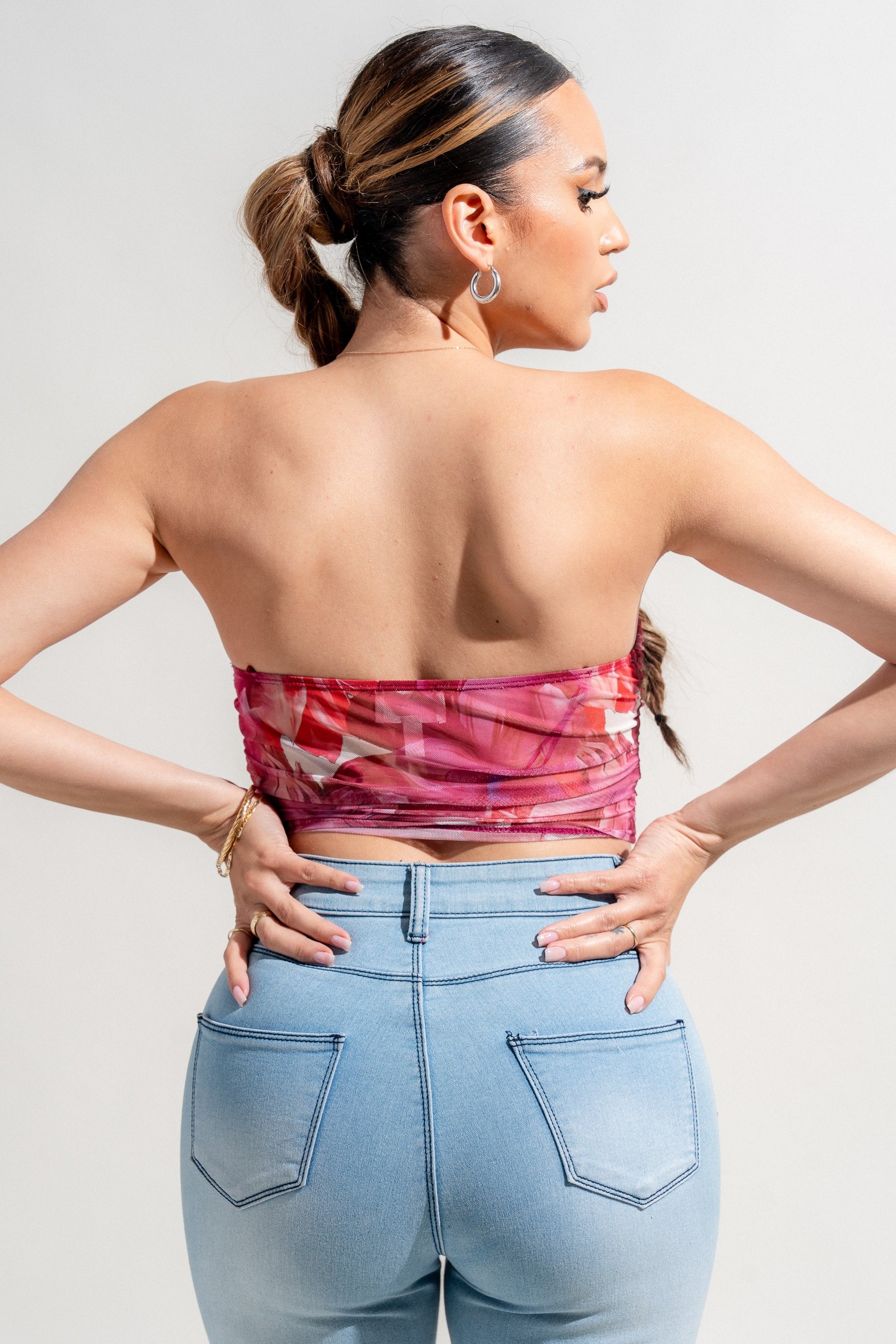 Mesh Print Deep Plunge Corset Printed Mesh Tube