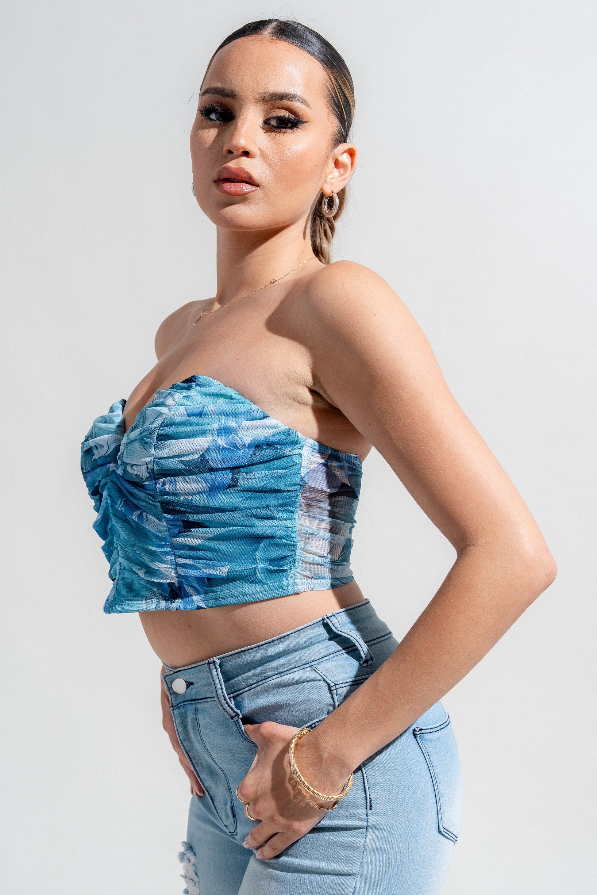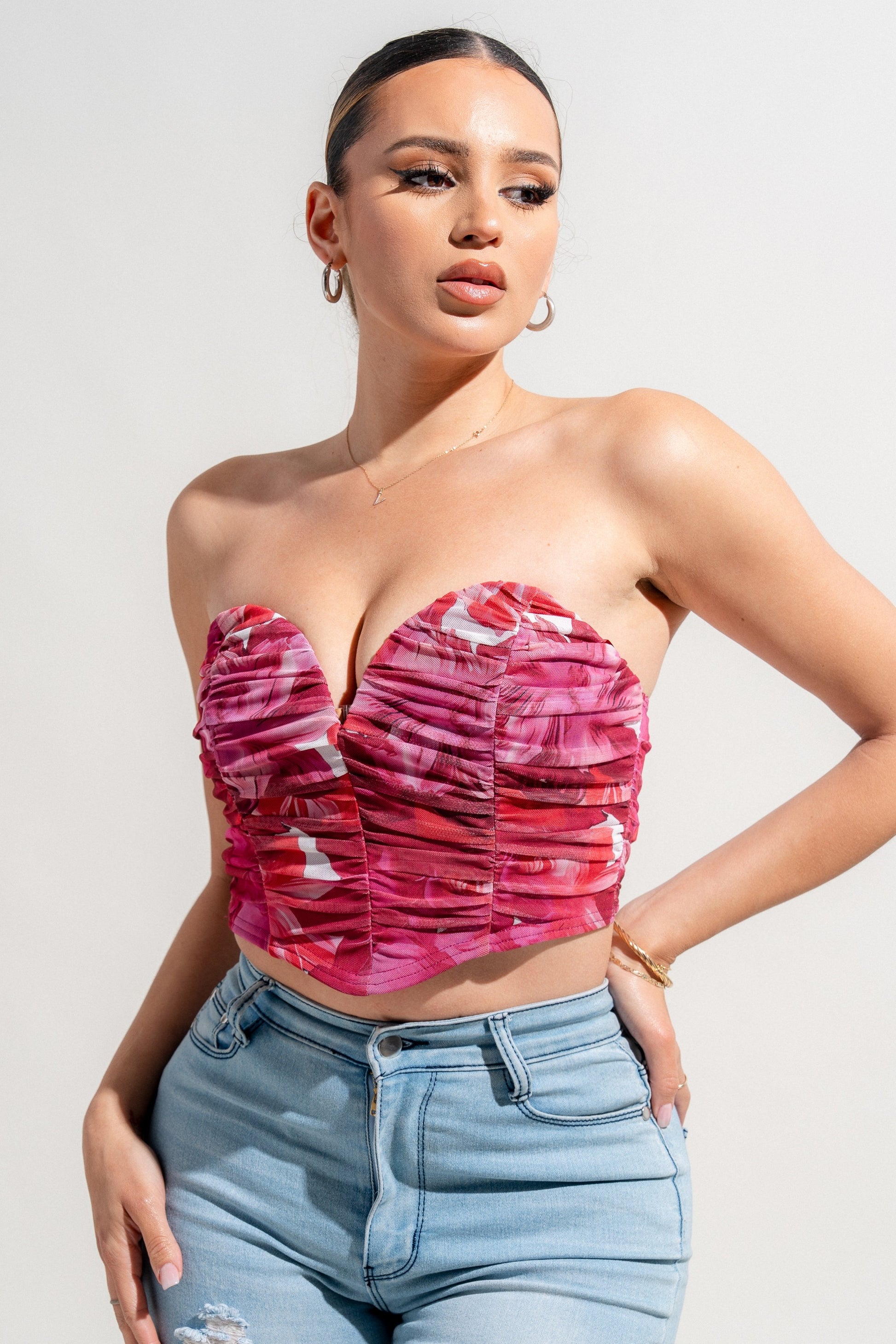 MESH PRINT DEEP PLUNGE CORSET PRINTED MESH TUBE