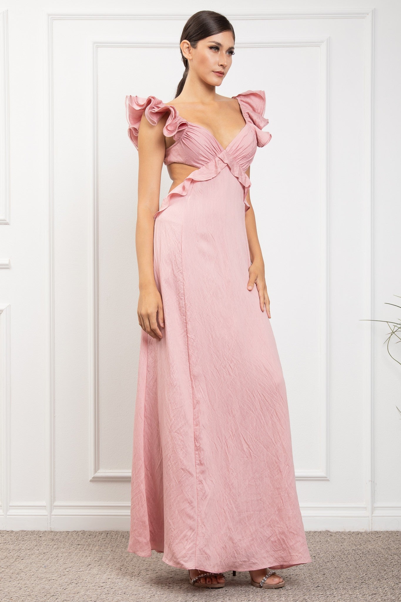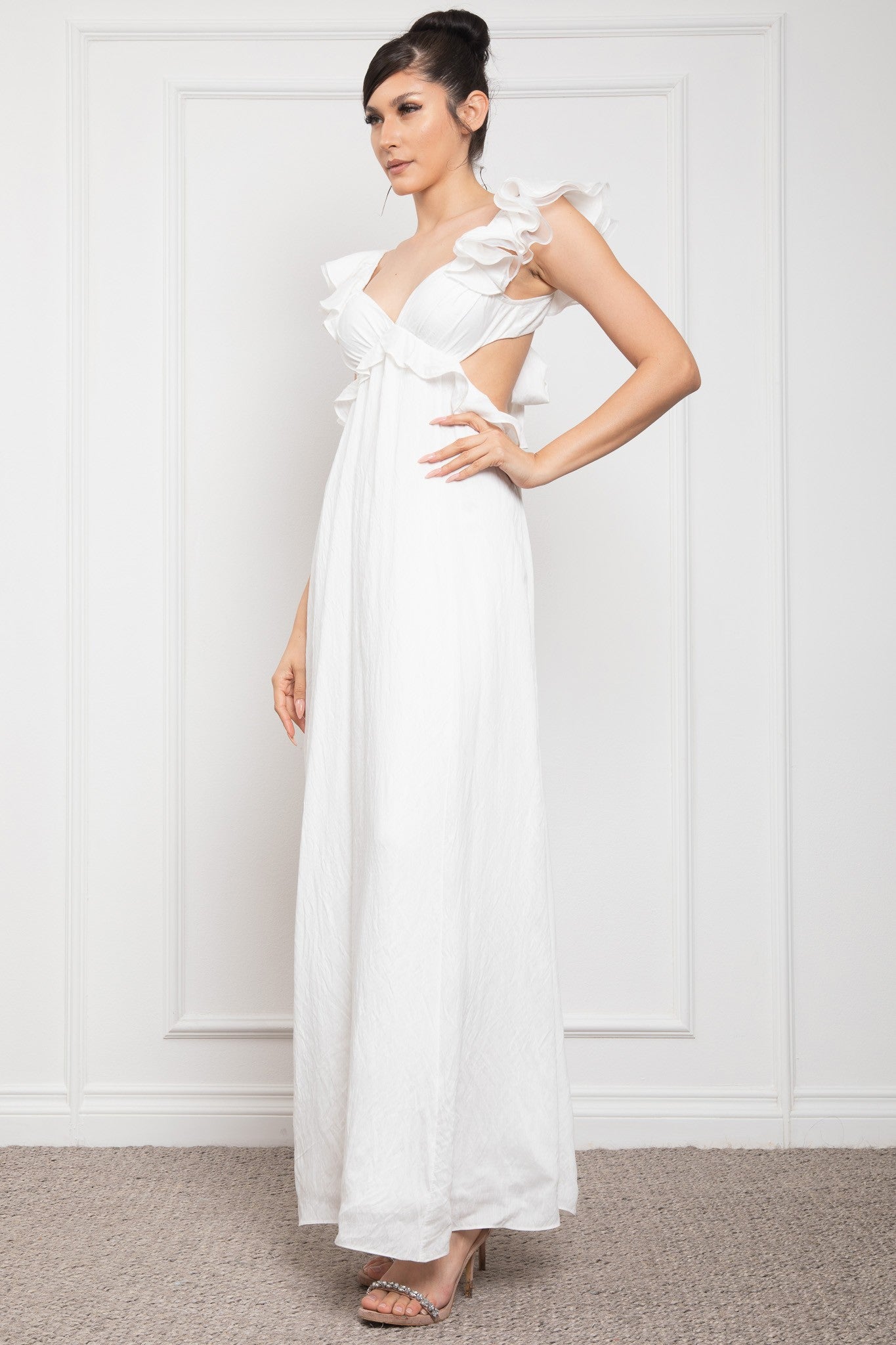 RUFFLED SLEEVE OPEN BACK WITH BIG BOW DRESS