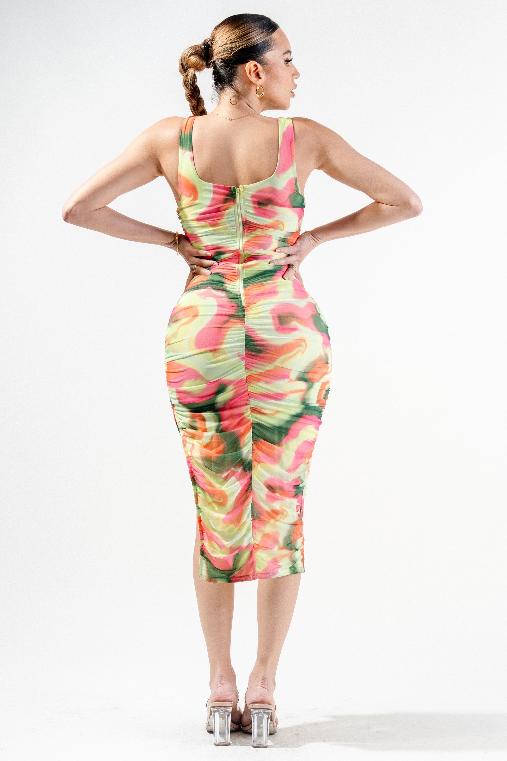 Sexy Multi Colors Marbles Print Mesh Midi Dress