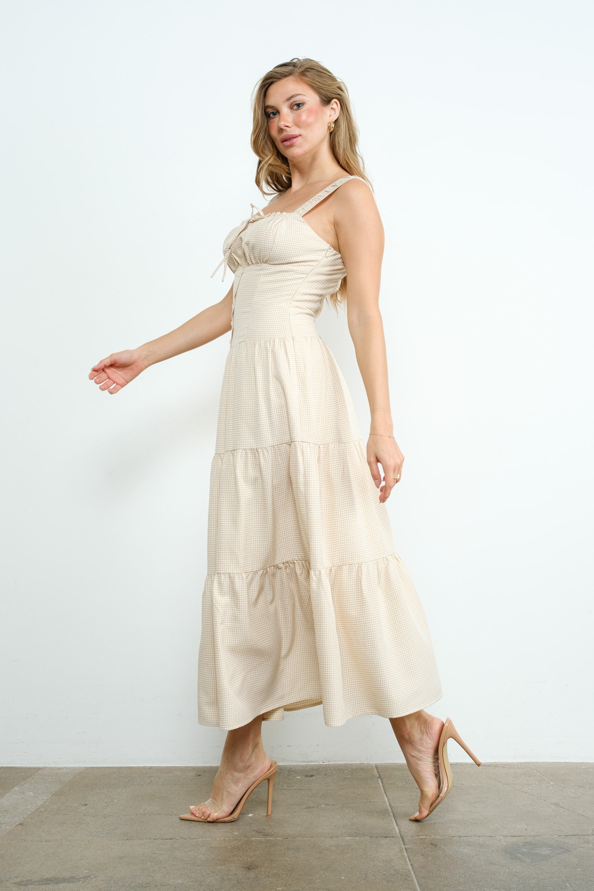 Smocked Gingham Midi Dress