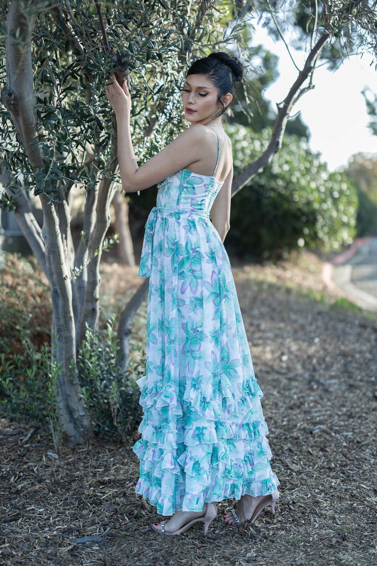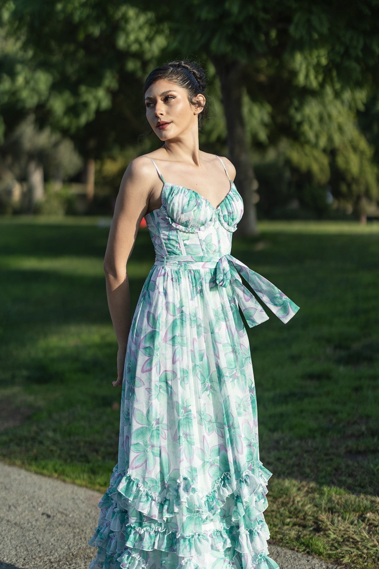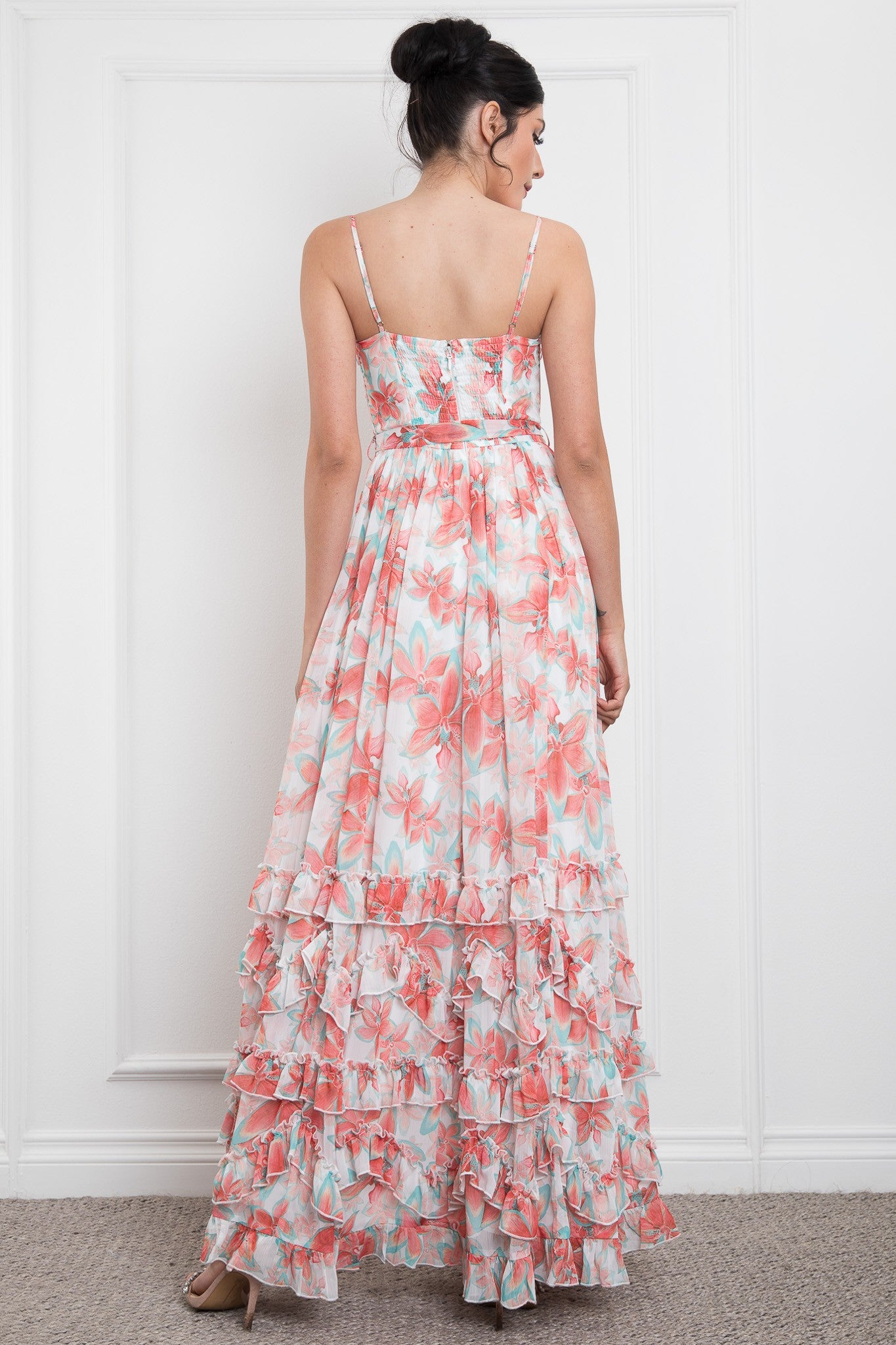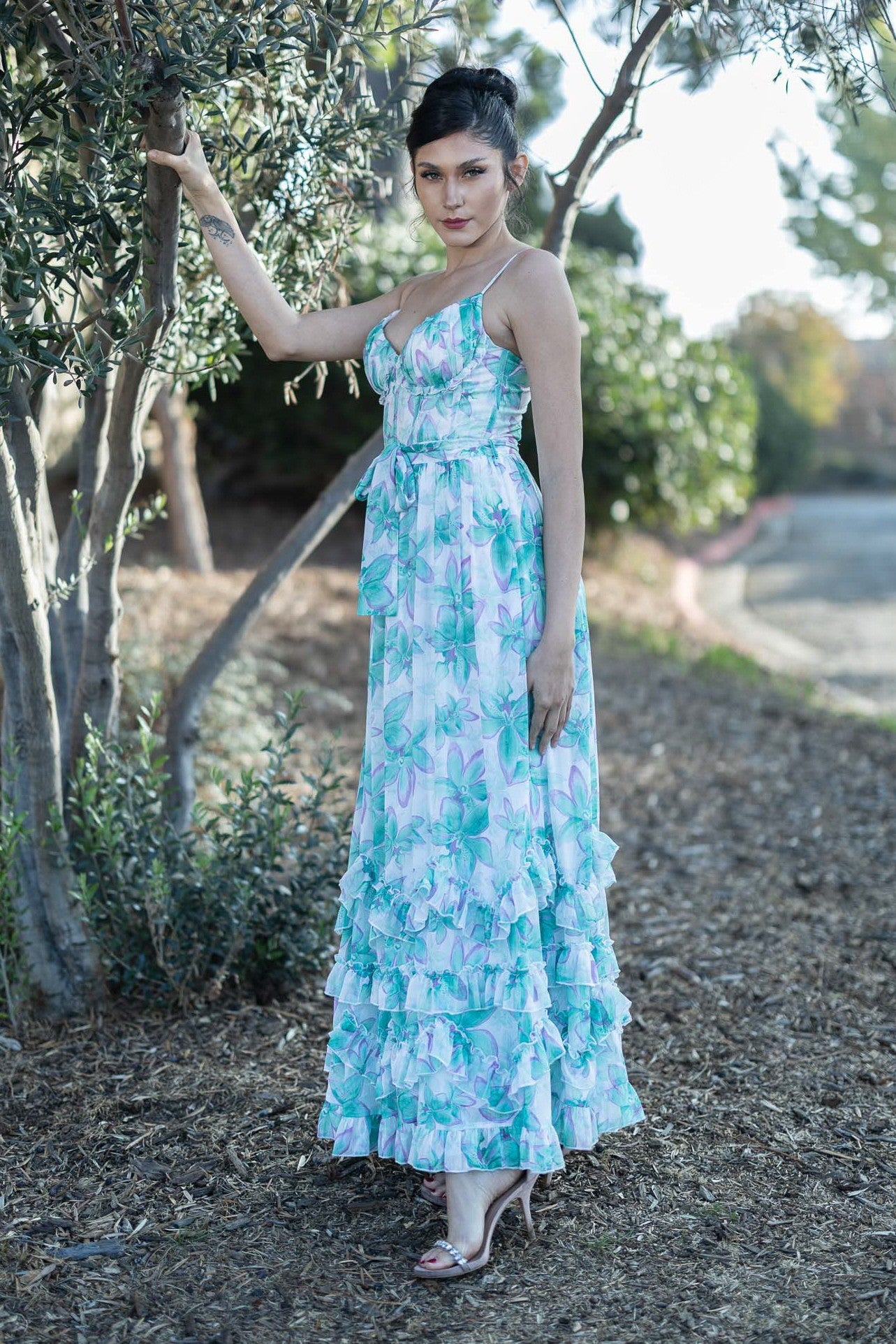 SPAGHETTI SHOULDER TIERED LONG DRESS