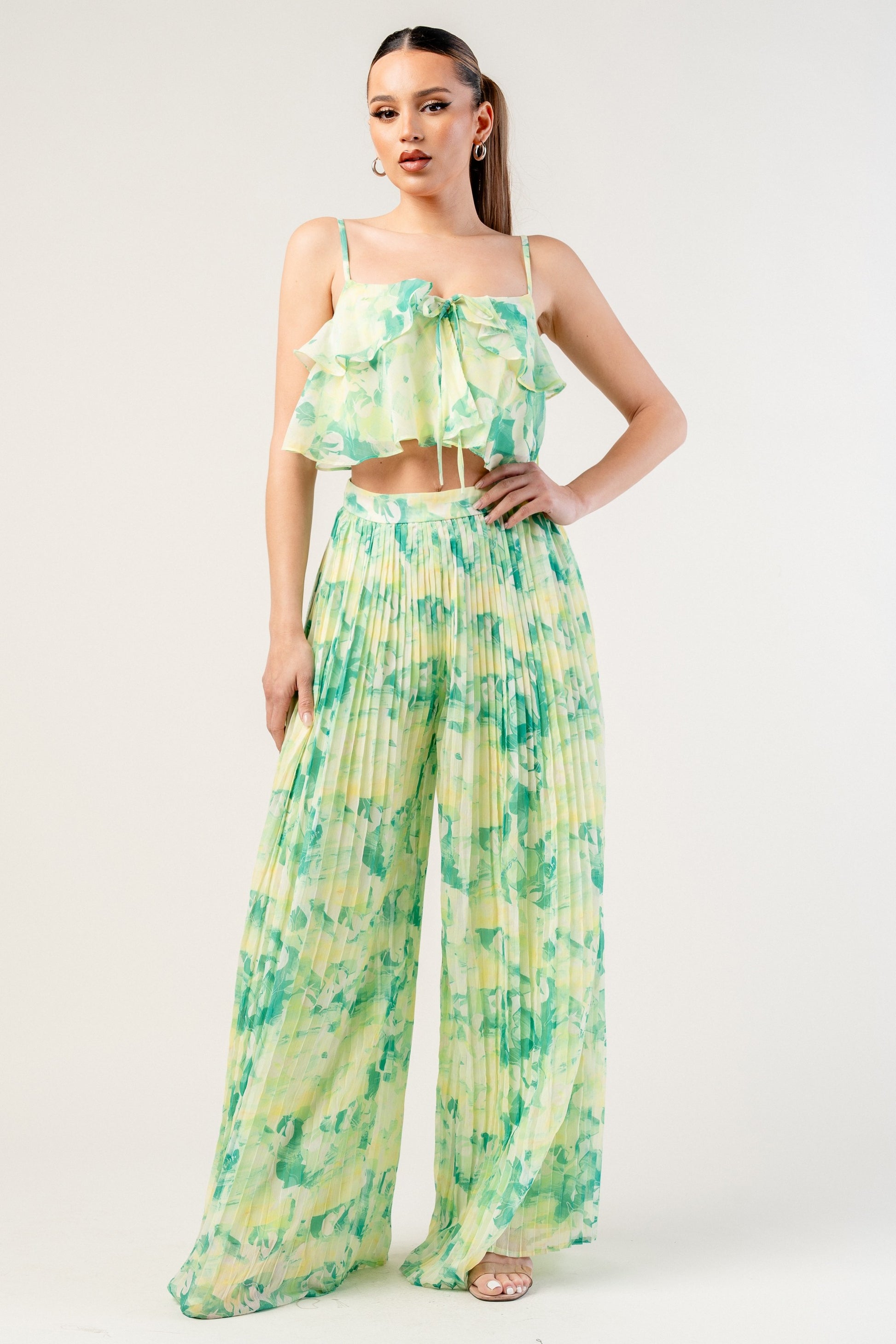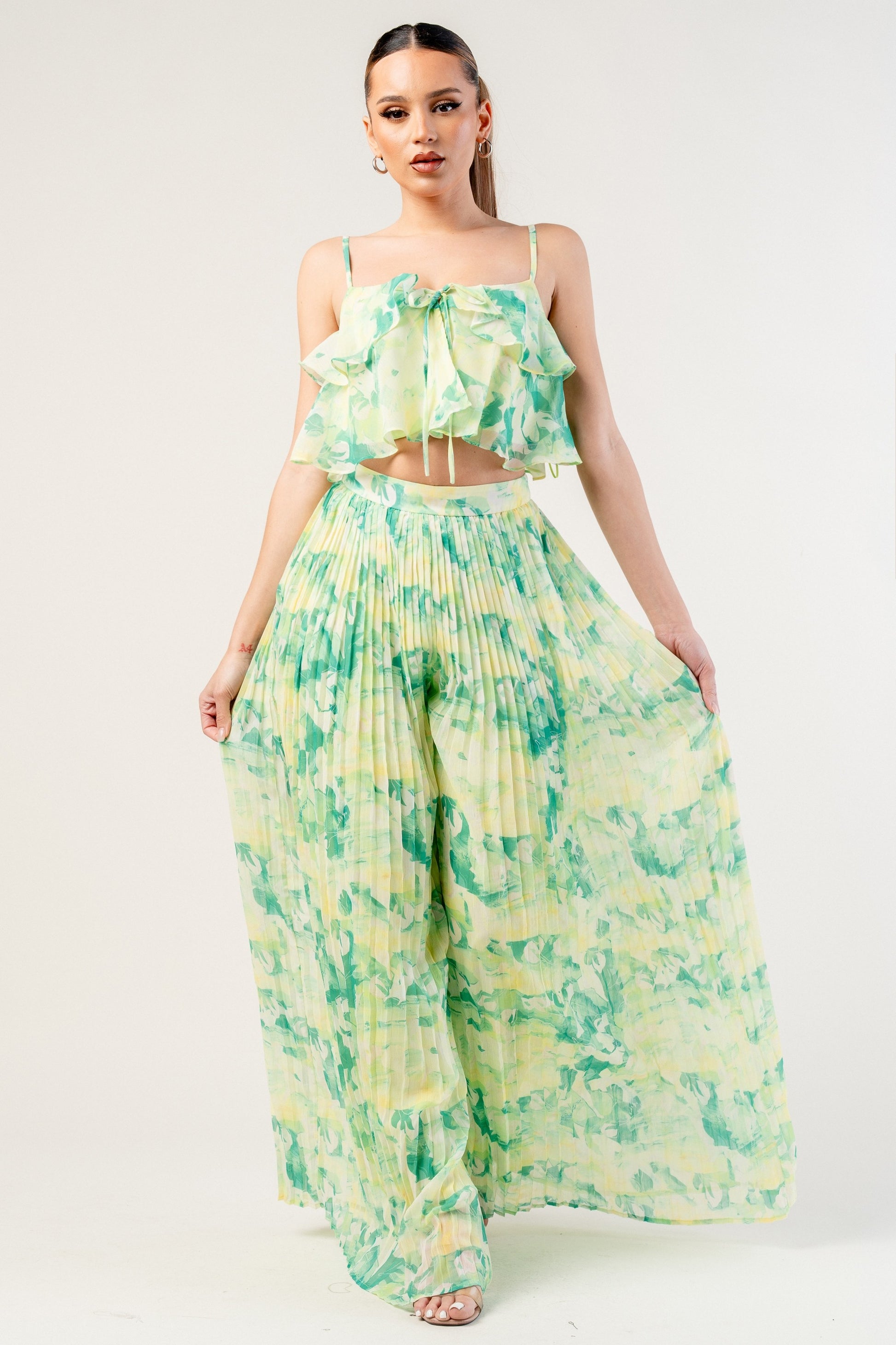CAMI TOP & PLEATS WIDE PANTS SET