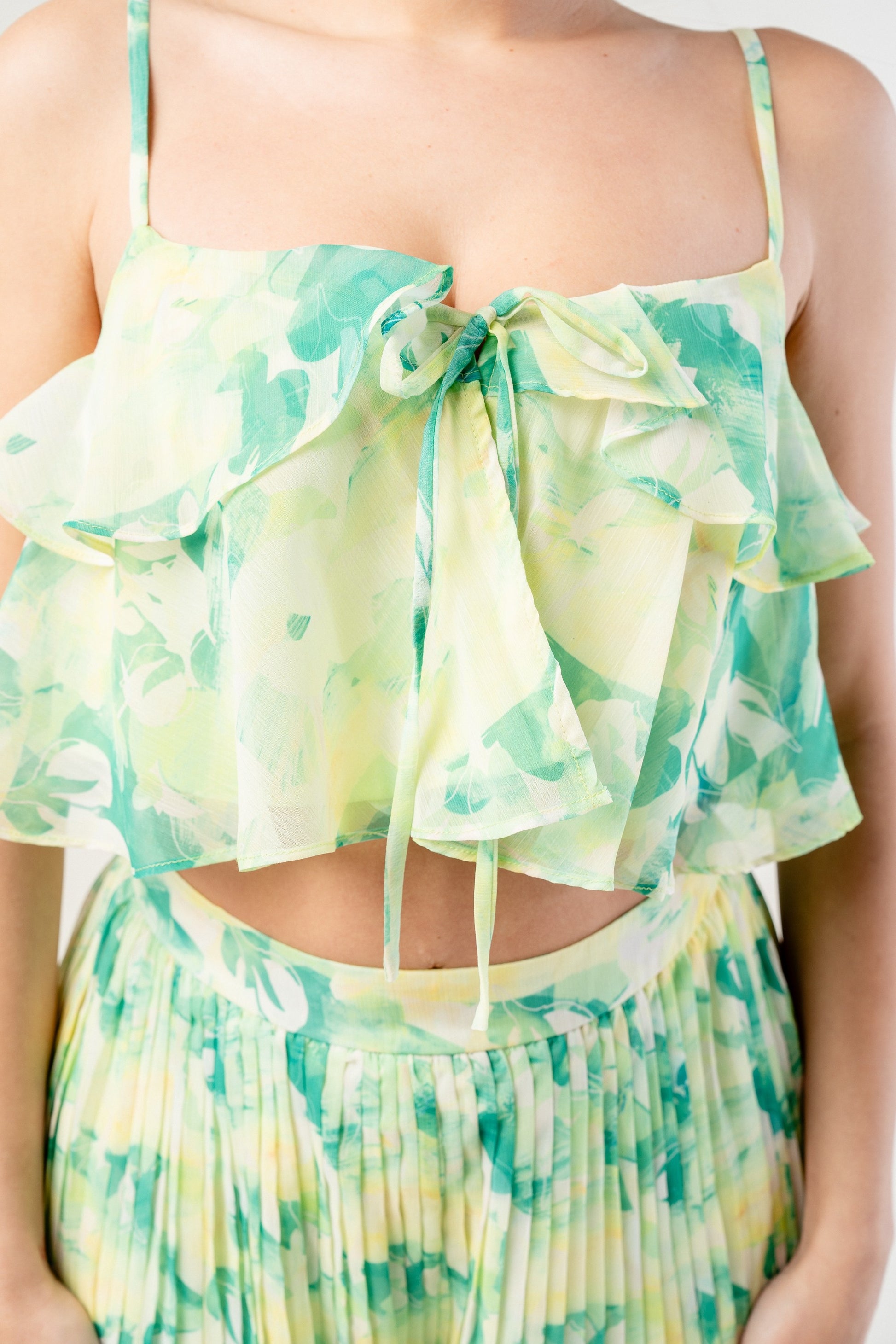 YORYU CHIFFON PRINT RUFFLE LAYERED